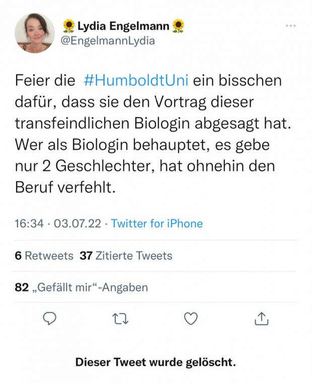 Die Diskussion um die Bedrohung der Lehr- und Forschungsfreiheit in Deutschland zieht weite Kreise, nachdem militante Aktivisten es mit Drohungen erreicht hatten, dass ein Vortrag der Biologin Marie-Luise Vollbrecht über biologisches Geschlecht und Geschlechterrollen an der Humboldt-Universität abgesagt wurde. Vollbrecht hatte vor, bei der „Langen Nacht der Wissenschaft“ am Samstag sprechen. In ihrem Vortrag mit dem Titel „Geschlecht ist nicht (Ge)schlecht, Sex, Gender und warum es in der Biologie zwei Geschlechter gibt“ wollte die Wissenschaftlerin am Samstagabend einem interessierten Publikum den Unterschied zwischen dem biologischen Geschlechtsbegriff und Geschlechterrollen erläutern. Zu ihrem Referat – das sie dann online hielt – gehörte auch die Feststellung, dass die Biologie nur zwei Geschlechter kennt. Diese Aussage zählt zu den Grundlagen in der Biologie, wie sie weltweit und auch an der Humboldt-Universität selbst gelehrt wird. Für militante so genannte Trans-Aktivisten stellt allerdings schon die die Feststellung der biologischen Zweigeschlechtlichkeit eine unerträgliche Provokation dar. Eine kleine Aktivistengruppe namens „Kritische Juristen“ bezeichnete Vollbrecht vor dem Vortrag als „bekanntermaßen transfeindlich“, und kündigte an, ihren Vortrag massiv zu stören. Darauf knickte die Leitung der Humboldt-Universität ein und sagte den Vortrag wegen „Sicherheitsbedenken“ ab.
