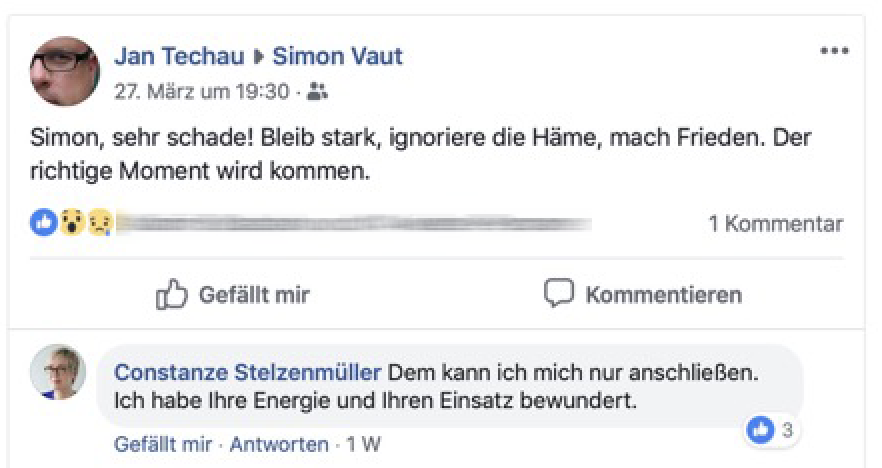 Unrechtsbewusstsein? Einsicht? Fehlanzeige. Stattdessen, auch mit Hilfe des SPIEGEL, eine neue Inszenierung – diesmal als jemand, der ideal mit den eigenen Fehlern umgeht. The show must go on, die Show muss weitergehen. Und so wird der Eindruck erweckt, als ob er selbst geständig gewesen sei, und nicht von Enthüllungen des Regionalsenders zum Offenlegen seines Betrugs gezwungen worden wäre. Die positiven Reaktionen zeigen, dass Vauts Fehlverhalten offenbar kein Einzelfall ist – anders wäre die massive Unterstützung nicht zu erklären. Teilen der politischen und medialen Klasse scheint der Kompass abhanden gekommen zu sein. Betrug ist für sie offenbar salonfähig – wenn man nur auf der „richtigen Seite“ steht, zu einer der richtigen, linken Parteien gehört. Und auch noch gegen rechts kämpft. Viele Schlagzeilen über Vaut fielen denn auch entsprechend beschönigend aus.