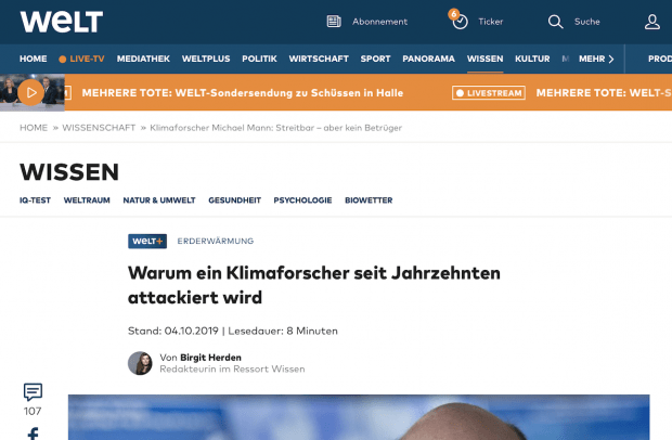 An einer anderen Stelle schreibt die WELT-Autorin: „Unter Laien sind Vorwürfe gegen Mann indes nie ganz verstummt.“ Was grober Unfug ist. Detaillierte Vorwürfe gab und gibt es gerade von wissenschaftlichen Kollegen. Keiner sah bisher einen Grund, sie zurückzunehmen. Wissenschaftliche Kritiker Manns mussten übrigens lange öffentlich Druck ausüben, bis er und seine Verbündeten ihnen die Rohdaten seiner Berechnungen aushändigte – was bei kontrovers diskutierten Ergebnissen eigentlich zum Standard gehört.