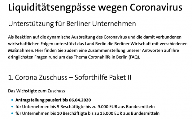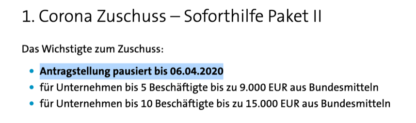 Ausgenommen vom Corona-Zuschuss sind bekanntlich u.a. ausdrücklich Unternehmen, die vor weniger als drei Jahren gegründet wurden – grade die sind aber am aufbauen und bräuchten Überbrückung, auch bei funktionierendem Geschäftsmodell.