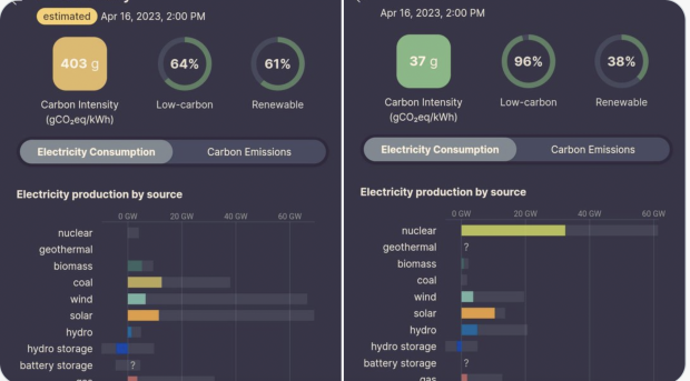 Die Bilanz beim CO2 pro Kilowattstunde am Tag nach der Abschaltung sah übrigens so aus:
