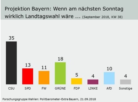 Das von der CSU abgespaltenen konservative Protestpotential verteilt sich auf FW und AFD gleichermaßen und liegt bei ca. 22 %. Ein Teil der Wähler nehmen statt der AFD die andere Alternative ( FW) in Kauf, als Ergebnis der 24/7 rundum ANTIFA – Propaganda folgend. LTW in Bayern sind keine BTW – da dort ohne FW.