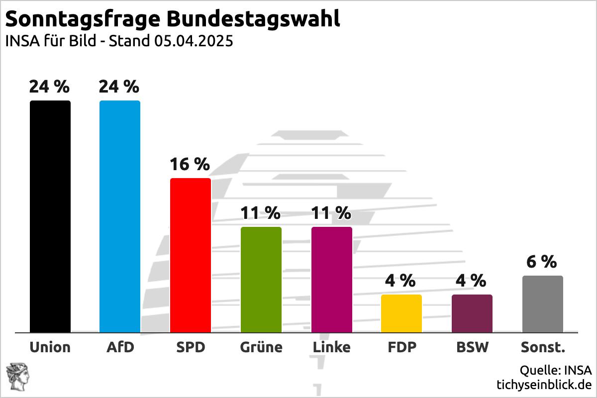 Der TE-Index wertet nun den Durchschnitt von sieben statt bisher sechs Instituten aus, YouGov ist jetzt mit dabei. Das Bild für die Union ist querbeet schlecht. Kein Wunder, dass innerhalb der Union ein demoskopisches Überholen durch die AfD noch vor Ostern befürchtet wird.