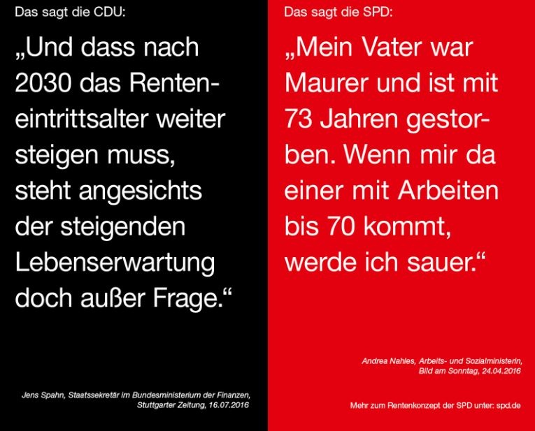 Leider gibt es wie immer – ist man erneut versucht zu sagen – zu diesem Vorgehen keine Alternative, denn die politischen Kollegen arbeiten nach demselben Prinzip. Da wäre beispielhaft Sozialministerin Andrea Nahles zu nennen, die in der Rentenpolitik mit dem Beruf und Lebensalter ihres Vater (Maurer/73 Jahre) „argumentiert“.