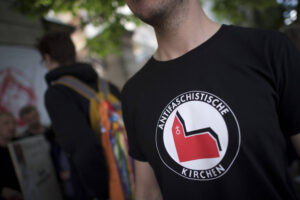 Mich würde mal eines interessieren, wenn ich jetzt das Bild mit dem T-Shirt „Antifaschistische Kirchen“ sehe: Von welchem Faschismus reden die eigentlich alle? Hab ich was verpasst?