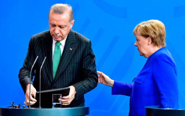 Wer wollte, konnte dies schon länger sehen. Etwa bei dem unmissverständlichen Handschlag Merkels mit dem Despoten vor zwei türkischen Fahnen und ganz ohne Schwarz-Rot-Gold in Ankara, während dieser hier seine Kaserne mit Islamistengruß und ausschließlich auf Türkisch eröffnen darf. Und beim Handschlag in Berlin selbstverständlich vor der Türkei-Fahne stehen durfte.
