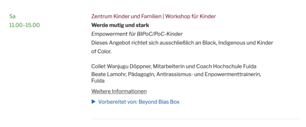 Der Workshop kritisches Weissein (link) ist auch auf Separation bedacht.
