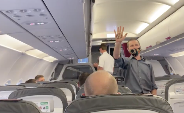 In dem Video der Berliner Aktivistin ist unter anderem zu hören, wie sie sagt: „Ich stehe auch für Sie auf, denn wir alle sind von einem ökologischen Kollaps bedroht“. Sie fordert, „Klimanotstand zum Gesetz machen“. Als eine Flugbegleiterin kommt, sagt sie „Ich will aussteigen. Ich will aus diesem System aussteigen. Das System macht unsere Erde kaputt. Und wir brauchen die Erde zum Leben.“ Die Aufforderung einer Flugbegleiterin, das Gefilmte zu löschen, ist der Mitstreiter der Aktivistin ganz offensichtlich nicht nachgekommen.