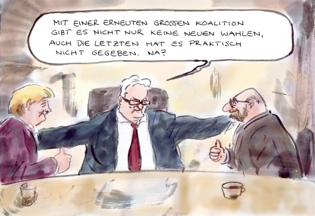 Jetzt also eine Neuauflage dieser GroKo der kleinen Geister? Mit Martin Schulz? In direkter GroKo oder getarnt im Kostüm einer schwarzgrünen Minderheitenregierung?