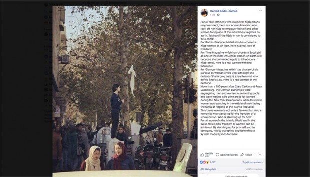 Im Westen wird der Hijab von einer politischen Gemeinde, die jeden Bezug zur politischen Kultur der Aufklärung verloren hat, als empowerment von Frauen krass missdeutet. Hamed Abdel-Samad ehrt eine wahrhaft tapfere Frau, wir verneigen uns zusammen mit ihm vor ihr. Uns eint mit Abdel-Samad die Ablehnung der autoritär-totalitären Männerwelt des Islam.