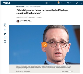 In einem der oben angezeigten tweets von Maas heißt es: “ Antisemiten haben bei uns keine Perspektiven“, wobei er Bezug auf die in den letzten Jahren zugewanderten Antisemiten nimmt.