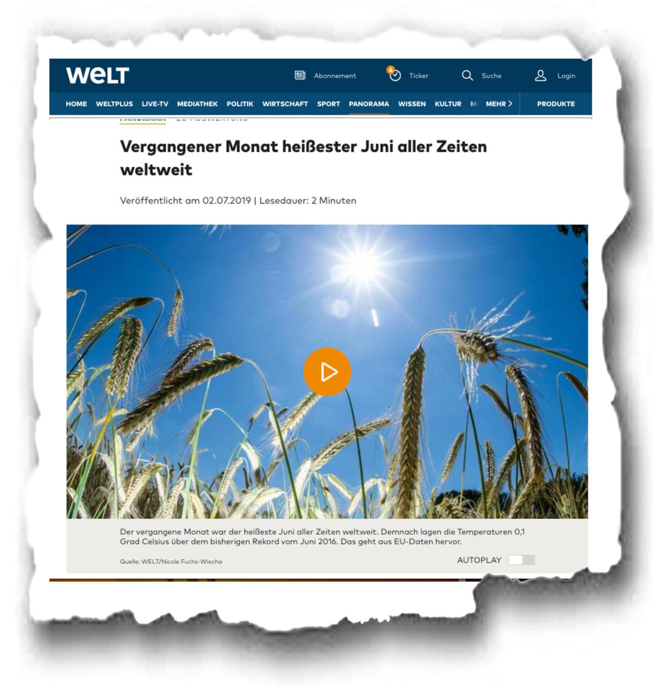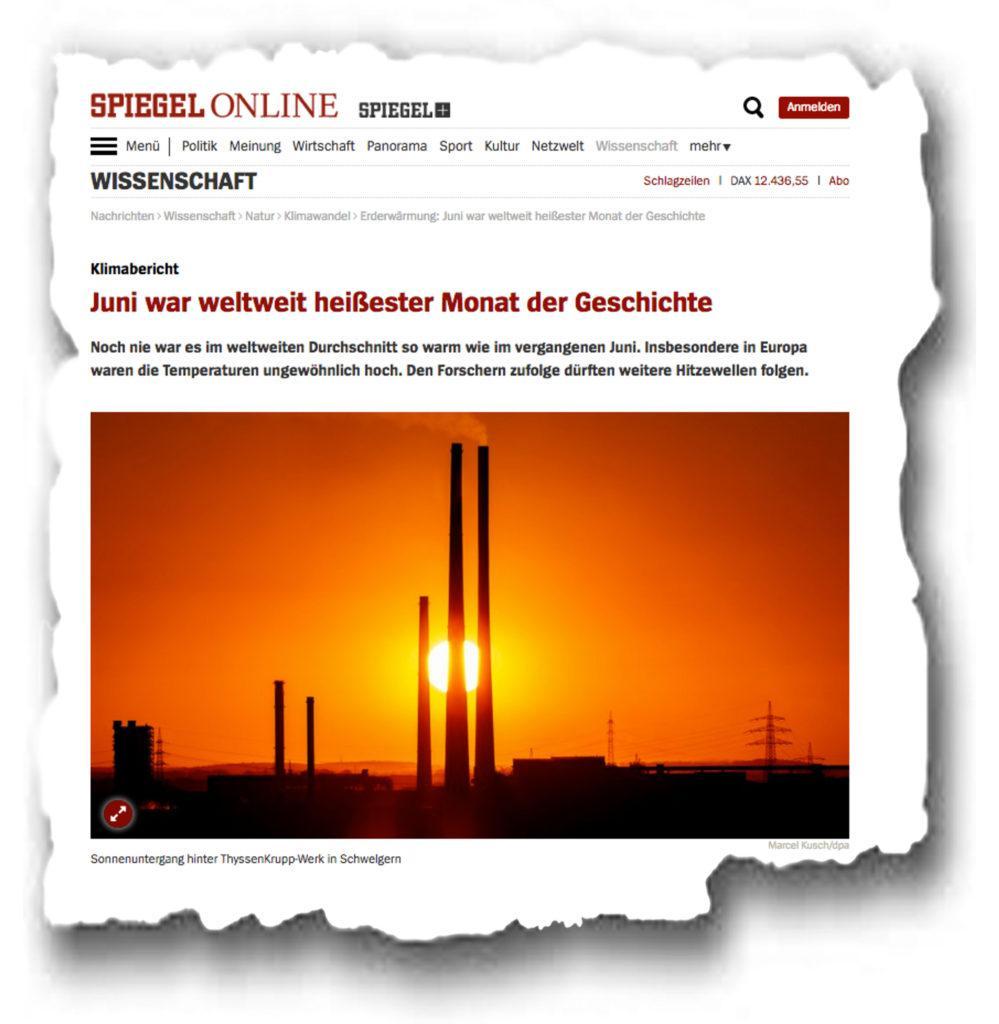 Spiegel Online meldete sogar: „Juni war weltweit heißester Monat der Geschichte“.