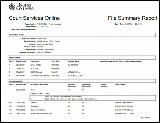 Nochmal: Tim Ball war der Beklagte und nicht der Kläger. Dessen Behauptung hat das Gericht geprüft und als nicht stichhaltig zurückgewiesen.