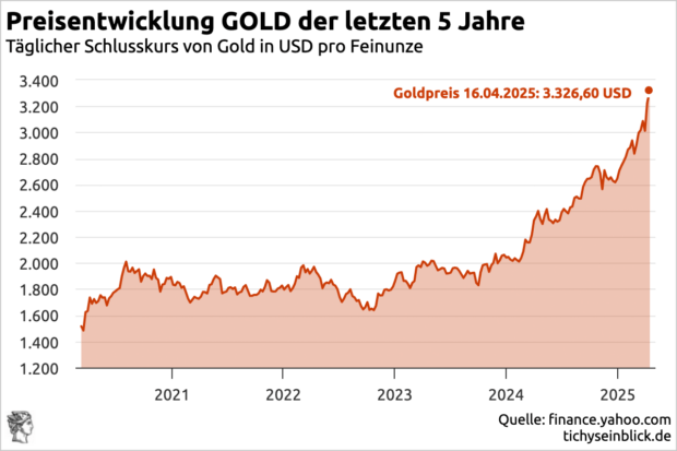 Schröder hatte allerdings auch kapiert: It’s the economy stupid. Was man Klingbeil, Merz und ihren grünen Richtungsweisern nicht nachsagen kann. Wie es mit den Wirtschaftserwartungen wacher Bürger aussieht, signalisiert seit jeher der Goldpreis zuverlässig. Er scheint weiter zu steigen.