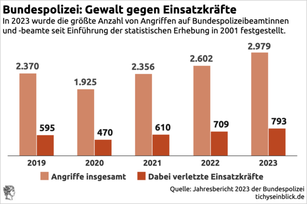 Insgesamt 2.979 Bundespolizisten wurden 2023 angegriffen – mehr als je zuvor. 145 Polizisten wurden beim Einsatz in Lützerath verletzt, wo gewalttätige Randalierer gegen den Brauntagebau protestierten, 88 Polizisten wurden dienstunfähig.