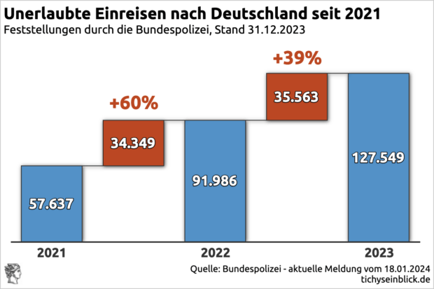 „Deutlich gestiegen ist die Zahl der illegalen Einwanderung. Sie erreichte mit 127.549 im vergangenen Jahr den Höchststand seit 2016.“
