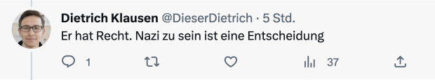 27. Wobei dieser El Hotzo wie dieser Dietrich Klausen höchstselbst bestimmen, wen sie unter „Nazi“ einordnen – um dann drauf schlagen zu können?