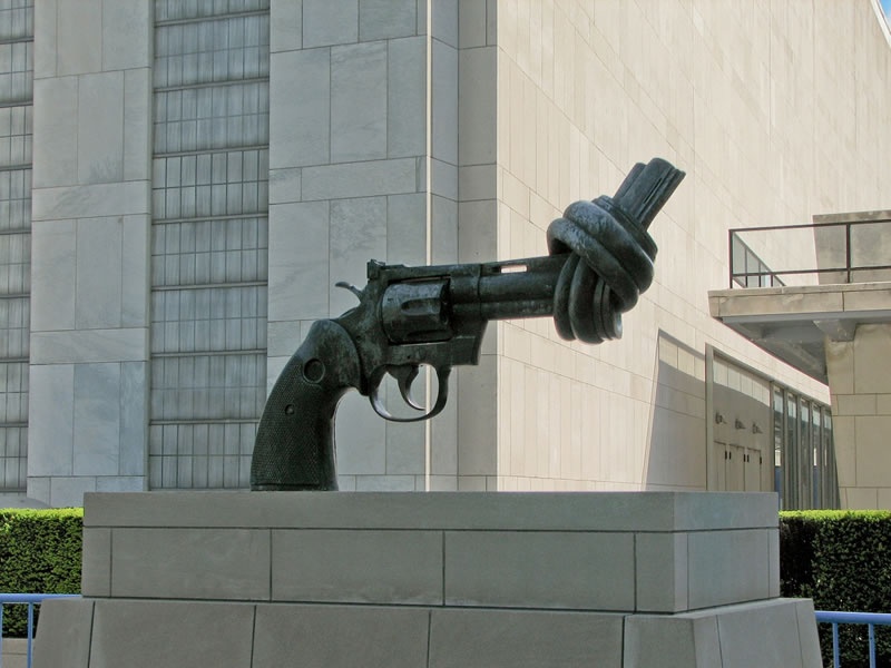 Das ist nur dieses Zitat von Carl Sandberg (oft fälschlich Bertolt Brecht zugeschrieben) geringfügig umformuliert: „Stell‘ dir vor, es ist Krieg, und keiner geht hin“.