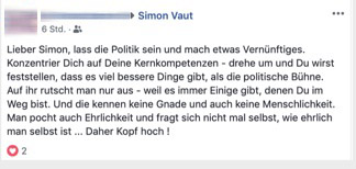 Auch beim Moralisieren über andere steht Simon Vaut seinen Parteikollegen in nichts nach: