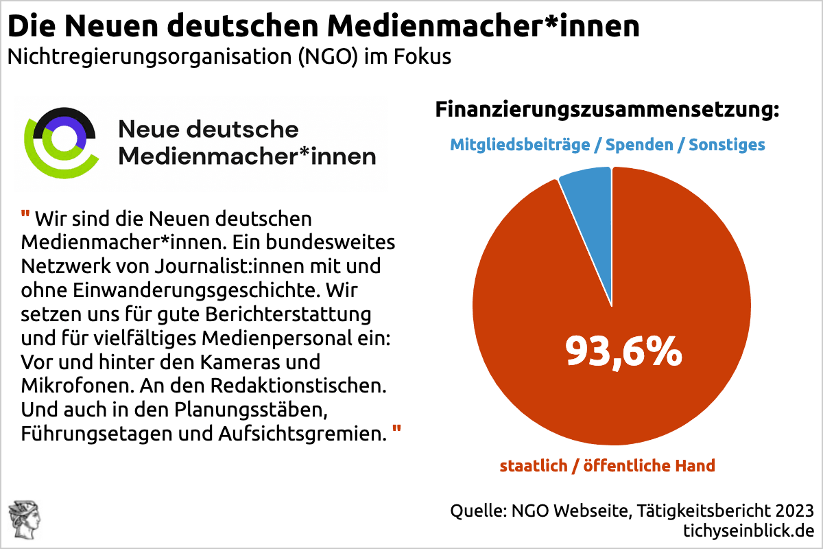 Nicht den geringsten Geldmangel kennen die „Neuen deutschen Medienmacher“. Wer nicht wusste was „Nicht-Regierungs“-Organisationen bedeutet, sieht es hier.