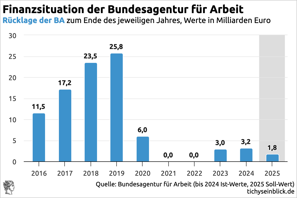 Grell beleuchten Zahlen die Finanzsituation der Bundesagentur für Arbeit, das Versagen der Sozialpolitik. Bereits 2024 fehlten 0,6 Mrd. Euro. Die verheerende Wirkung der Corona-Politik zeigt der Finanzierungssaldo.
