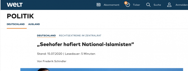 Das Bundesamt für Verfassungsschutz hat im aktuellen Bericht zum ersten Mal den Verband ATIB (Union Türkisch-Islamischen Kulturvereine in Europa) den türkischen Rechtsextremisten „Graue Wölfe“ zugerechnet. ATIB ist nicht nur der mitgliedsstärkste Verband im Zentralrat der Muslime, sondern sogar dessen Gründungsmitglied. Horst Seehofer will dennoch weiter mit dem Zentralrat der Muslime zusammenarbeiten, wie WELT berichtete.