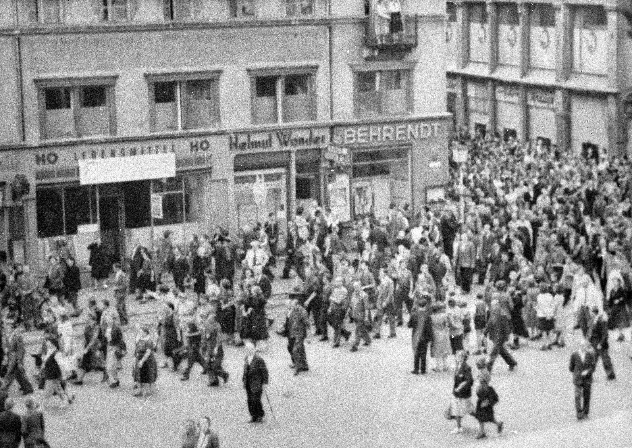 Aufruf zum Generalstreik – Demonstranten am 17. Juni 1953 in der Görlitzer Innenstadt (3)