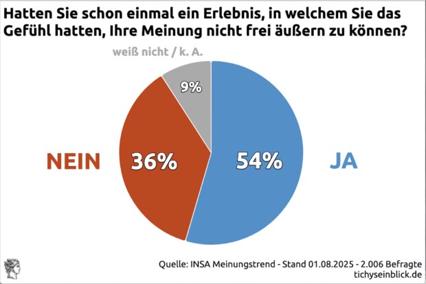 54 Prozent haben diese Einschüchterung bereits persönlich erlebt. Das zeigt eine noch weitere Verengung der Meinungsfreiheit in den letzten Jahren.