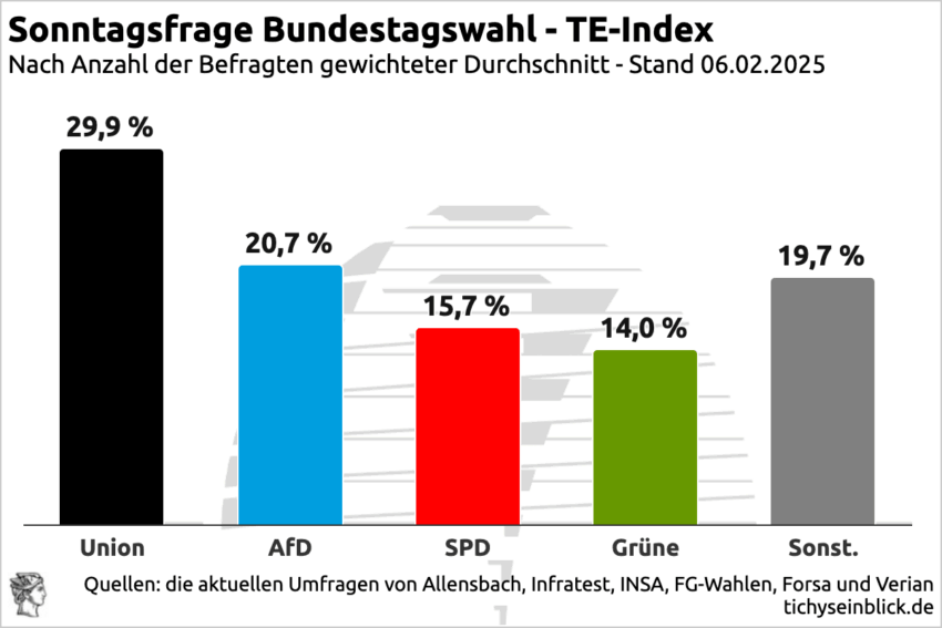 Sogar bis in den ÖRR dringt durch: Die erhoffte Wende für die Rotgrünroten nach ihrem Trommelfeuer auf die Merz’sche Todsünde gegen die Brandmauer hat in den neuesten deutschen Umfragen nicht stattgefunden.