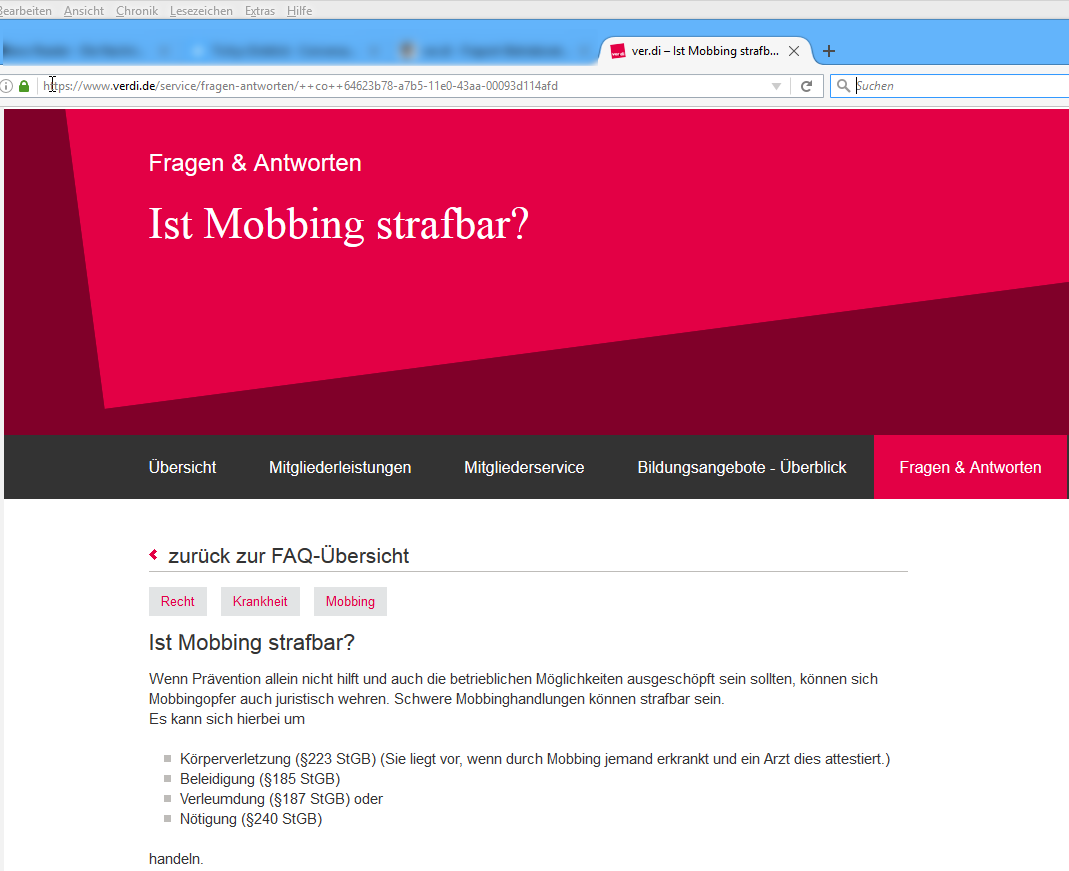 Wenn Prävention allein nicht hilft und auch die betrieblichen Möglichkeiten ausgeschöpft sein sollten, können sich Mobbingopfer auch juristisch wehren. Schwere Mobbinghandlungen können strafbar sein.“
