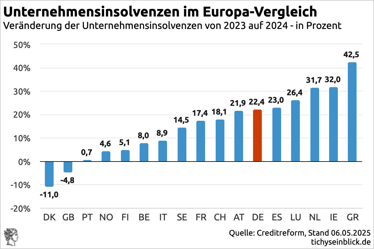 Im Europavergleich der Firmenpleiten sah Deutschland nie schlechter aus: