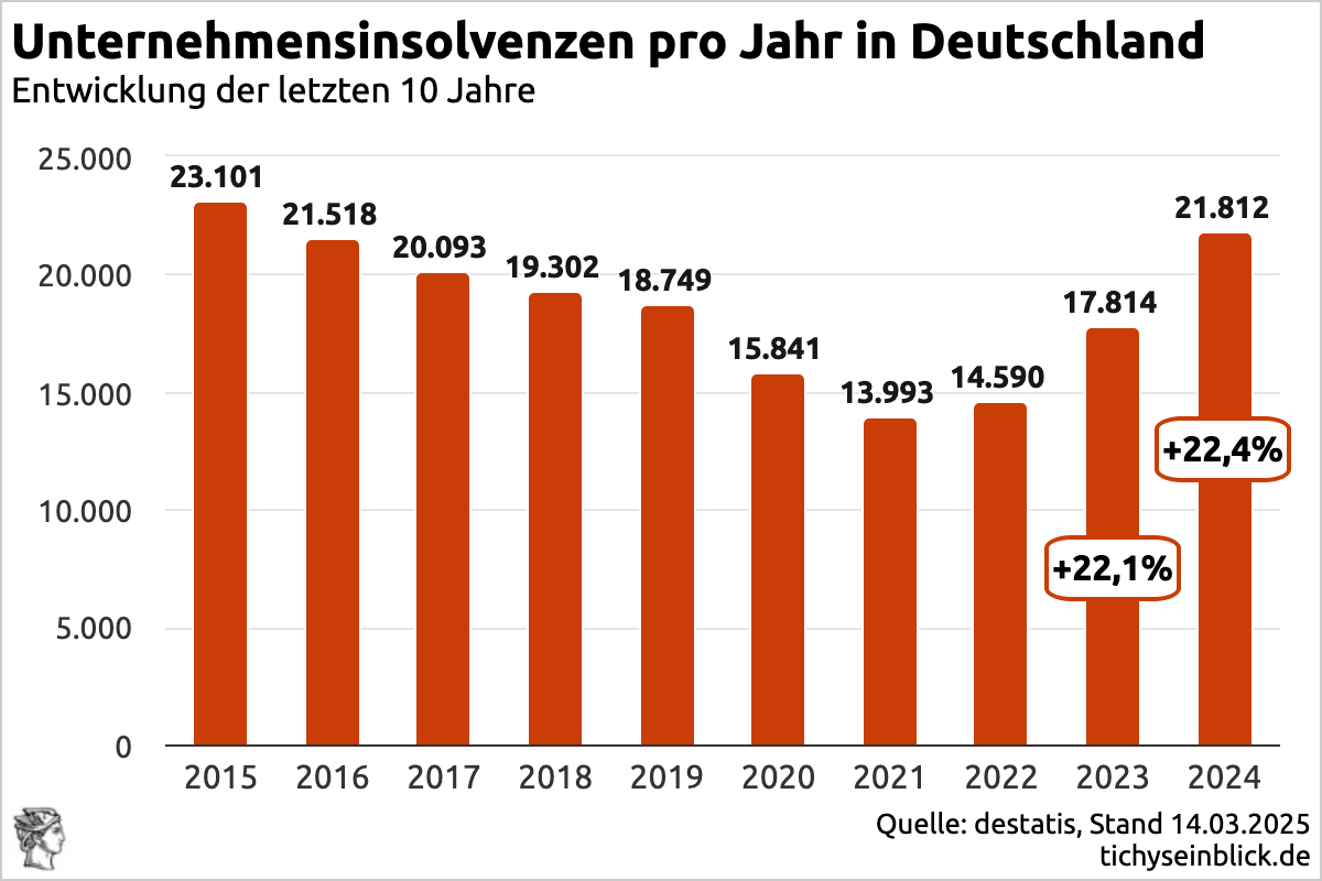 Die jährlichen Firmenpleiten seit zehn Jahren: