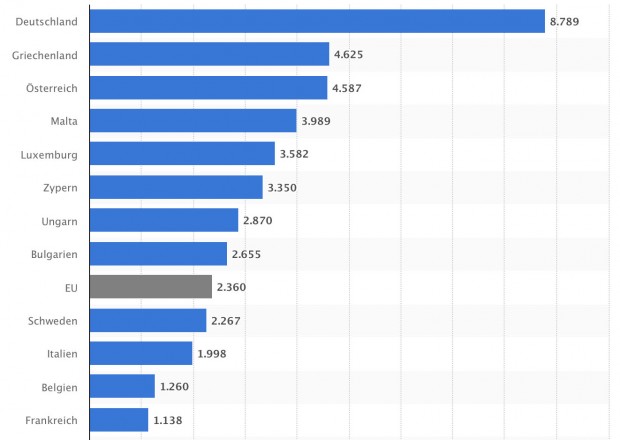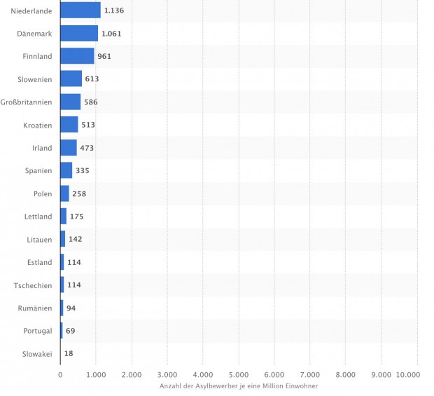 Bevor wir Ihnen das sonderbare Sondierungsgebaren zeigen, das Robin Alexander dokumentierte, bitte wir Sie, einen aufmerksamen Blick auf die Tabelle von Statista zu werfen. Sie zeigt die erstmaligen Asylbewerber je eine Million Einwohner in den EU-Mitgliedsstaaten. Parallel dazu empfehlen wir Ihnen, den vor einer Stunde online gestellten Bericht von Alexander Wallasch (nebenstehender Verweis) über die von den EU-Parlamentariern der GroKo-Sondierer mit beschlossenen Pläne zur Aushebelung der Dublin-Regeln zu lesen: Damit würde der sogenannte Familiennachzug nicht begrenzt, etwa auf Frau und Kinder, sondern beliebig Clan-groß ausgeweitet – ohne jede Nachweispflicht von Familie. Noch Fragen?
