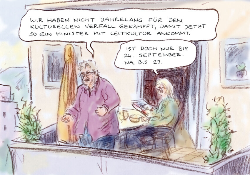 Er redet von Leitkultur. Das ist das, was vor einem Dutzend Jahren schon mal von Friedrich Merz eingefordert wurde. Das war allerdings vor der großen Migrationswelle, die wir jetzt im Zuge der nationalen Kraftanstrengung eingliedern und abschieben sollen. Hoffentlich lesen das die Taliban-Kämpfer. Es kann dann nur besser werden mit der Lage in Hü-Hott-Land, auch bekannt als absurde Republik Deutschland, die man nicht erfinden kann.