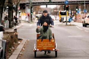 Also: ein toughe Frau, Lara-Croft-Typ, mit westasiatischem Teint, einer Beinprothese, die früher ein Mann war, rettet eine Heterofrau, zu blöd, um die Uhrzeit abzulesen, auf einem fliegenden Lastenfahrrad. Die Heterofrau ist von der Transfrau, ihrem Mut und Standing gegen alle Widrigkeiten des Lebens (hier: voll krasse Vorurteile gegen Migranten) und den super lecker, gesunden veganen, klimaneutralen Gerichten, die die Heldin kocht, so begeistert, dass sie flugs erkennt, eigentlich ein Mann zu sein. Einer Happy-Umtransformation steht dem gemeinsamen Glück nicht im Wege und beide laufen Hand in Hand gemeinsam durch ein Spalier von Windrädern in den Regenbogen und wählen aus Dankbarkeit für den Fortschritt, der all’ das möglich macht, lebenslang die Grünen!
