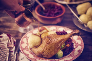 Der Frankfurter Apfelwein kommt nie allein, er bringt vielmehr sein Zubehör mit: das gerippte Glas, den grau-blauen Bembel und den Fichtenkranz vor dem Lokal, der einst den Steuereintreibern signalisierte: Hier gibt es etwas zu holen. Und dann das Essen, das zu diesem Wein gehört, nicht minder gewöhnungsbedürftig als das Getränk: Handkäs (ein magerer Sauermilchkäse) mit „Musik“ (mit Zwiebeln und Essig und allerlei anderem angemacht), Leiterchen, Rippchen, Haxe, Schäufele, Solber, mit Sauerkraut oder ohne, und natürlich die aus sieben Kräutern gefertigte Grüne Soße, die „Grie Soß“, deren Name als regionale Spezialität sogar geschützt ist. Wenn man will, kann man das alles zusammen als die Kultur des Frankfurter Apfelweins bezeichnen.