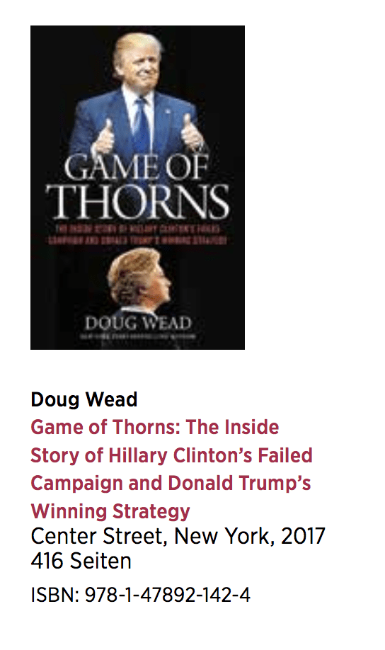 Die Clinton-Compañeros waren sicher, das spiele keine Rolle, Hillary kandidiere, nicht Bill. In der Tat waren Sexgeschichten und Seitensprünge von US-Präsidenten nichts Neues. Aber eine First Lady, die die Opfer ihres Mannes rücksichtslos verfolgen ließ, wenn sie den Mund aufmachten, hatte es noch nie gegeben. Am Ende, schreibt Doug Wead, waren es nicht Whitewater, Travelgate, Filegate und Chinagate, die zum Impeachment gegen Bill Clinton 1998 und zur Niederlage Hillarys 2016 führten, sondern Bills fortgesetzte Sexskandale, ihre Vertuschung und die Verfolgung der Opfer durch Hillary.