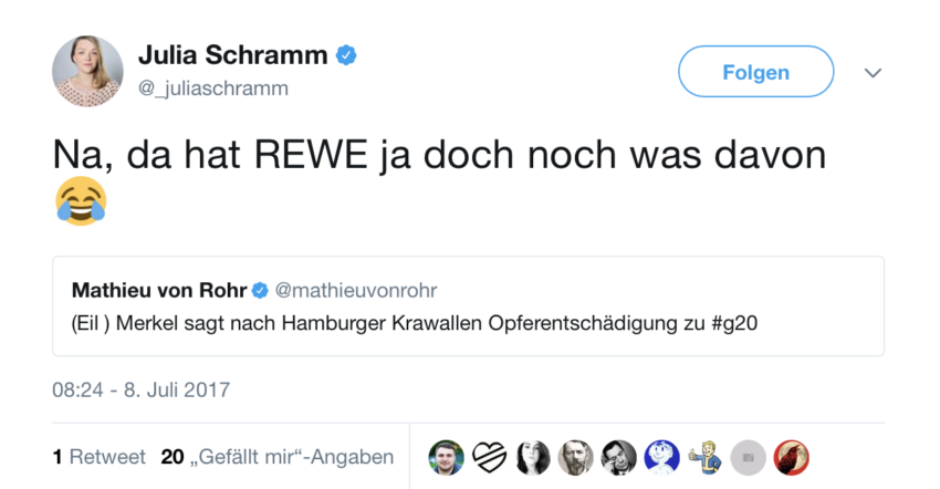 Ein Kollege schaute sich nach der G20-Schlacht in Hamburg am Sonntag um und zog aus dem folgenden Bild den Schluss, zumindest die SPD Altona war vorbereitet.