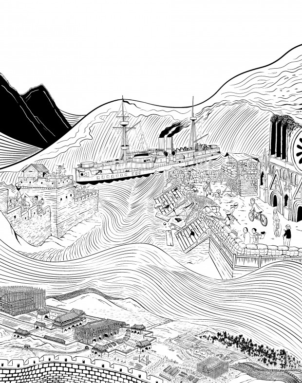 Der in Kalifornien ansässige chinesische Künstler Jing Liu schildert in „Der Weg in die Moderne“, dem vierten Band der von ihm geschaffenen Reihe „Chinas Geschichte im Comic“, diesen schmerzhaften Weg eines in alten Traditionen erstarrten Landes in die Moderne. Westlichen Lesern bieten sich dadurch Möglichkeiten des Perspektivwechsels, Einblicke in die „Sichtweise der anderen“.