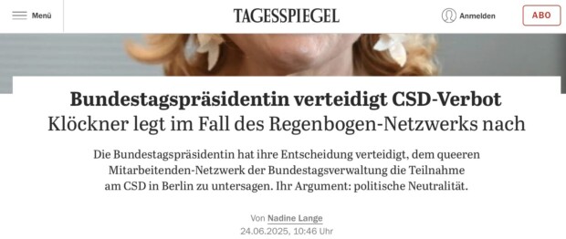 Der „Tagesspiegel“, das ZDF und andere Medien bestätigen wieder einmal ihren Ruf als Plattformen für Falschmeldungen. „Bundestagspräsidentin verteidigt CSD-Verbot“ titelte der „Tagesspiegel“.