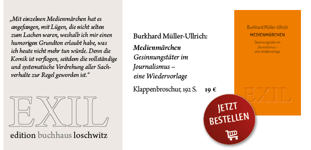 Burkhard Müller-Ullrich, Medienmärchen. Gesinnungstäter im Journalismus – eine Wiedervorlage. Edition EXIL im Buchhaus Loschwitz, Klappenbroschur, 192 Seiten, 19,00 €.