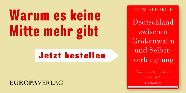 Reinhard Mohr, Deutschland zwischen Größenwahn und Selbstverleugnung. Warum es keine Mitte mehr gibt. Europa Verlag, 160 Seiten, 16,00 €.