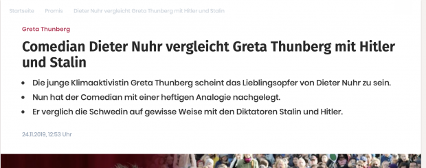 - „Die junge Klimaaktivistin Greta Thunberg scheint das Lieblingsopfer von Dieter Nuhr zu sein.