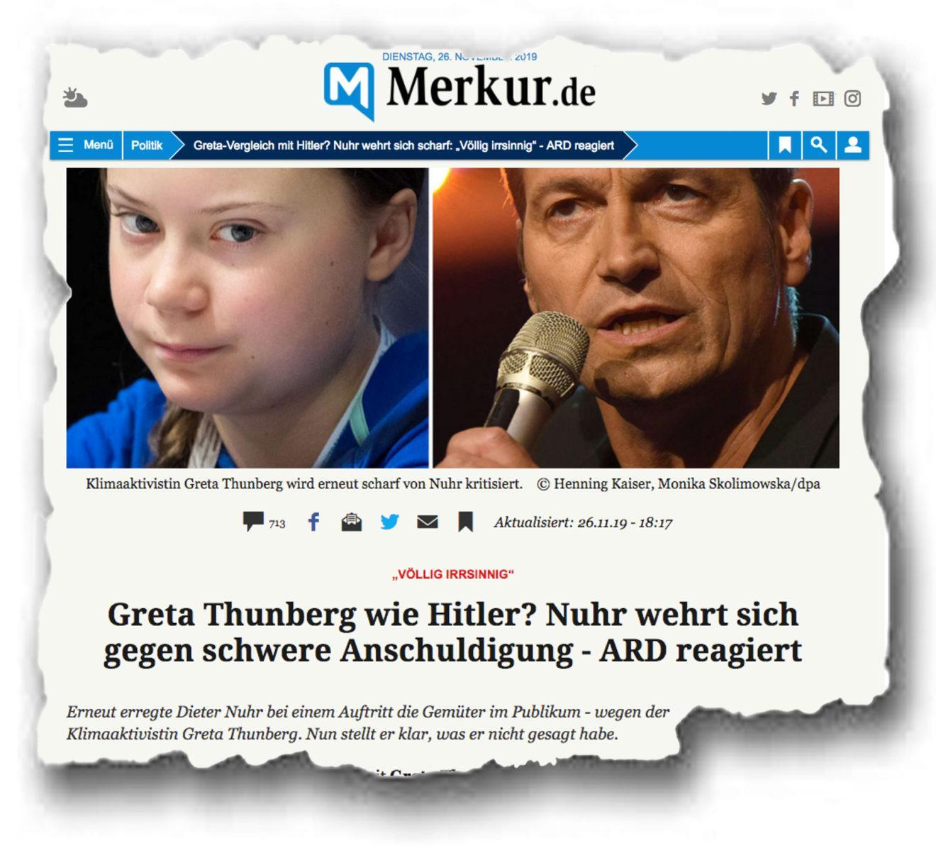 „Ist Gretas System zur Vermeidung der Klimakrise mit Meinungs-Fundamentalismus von Hitler vergleichbar? Dieter Nuhr glaubt das offenbar.“