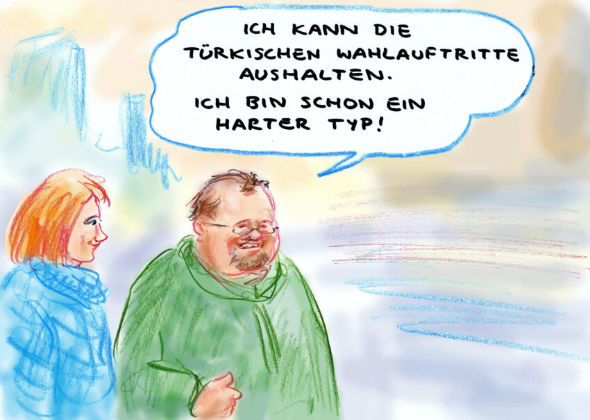 Wann kündigt „Erdo“ nun endlich seinen ersten Wahlkampfauftritt in Buntland an. Das ist doch der nächste logische Zug. Ich bin schon so neugierig, wie sich die Berliner Kapaune dann winden.