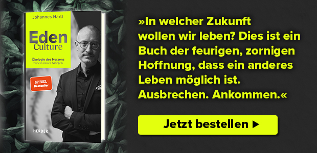 Johannes Hartl, Eden Culture. Ökologie des Herzens für ein neues Morgen. Herder Verlag, Hardcover mit Schutzumschlag, 304 Seiten, 24,- €