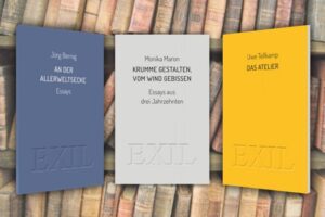 Ulrich Schacht, Im Schnee treiben. Essays zum poetischen Weltverständnis. Reihe EXIL in der Edition Buchhaus Loschwitz, 264 Seiten, 19,00 €