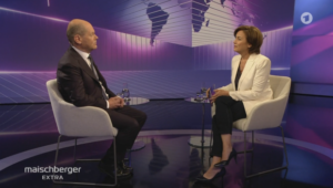 Einen habe ich allerdings auch in dieser Sendung auf meiner Seite. Johannes Varwick scheint mit diesen Spekulationen auch nicht viel anfangen zu können. „Putin, so hieß es vor Monaten, hat Parkinson, hat Krebs, ist schwach, kurz vorm Ende. Jetzt dieser Putschversuch, die Meuterei, wir haben ihn abgeschrieben – ich glaube nicht daran. Es gibt auch keine Anhaltspunkte dafür. Putin ist der Akteur, mit dem wir es zu tun haben. Und wenn er morgen stürzt und ein besserer kommt, dann wäre ich der erste, der sich freut. Aber wir sollten doch nicht auf Wunschdenken eine Strategie bauen, sondern wir müssen mit dem Russland leben, wie es im Moment ist.“ Während dieser ganzen Redezeit sieht man die Historikerin Davies, die Varwick über den Tisch hinweg anfunkelt.