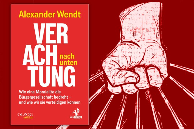 Alexander Wendt, Verachtung nach unten. Wie eine Moralelite die Bürgergesellschaft bedroht – und wie wir sie verteidigen können. Edition Olzog im Lau-Verlag, Hardcover mit Schutzumschlag und Lesebändchen, 372 Seiten, 26,00 €.