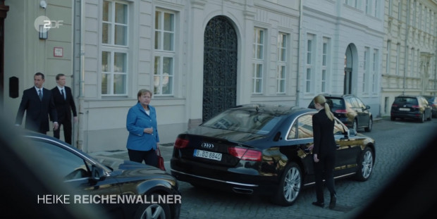 „Wie viele Stunden kann man am Tag (laufen)?“ fragt die Merkelattrappe in der gepanzerten Audi-Limousine und legt ihr Fischbrötchen halbgegessen weg, weil ihr was auf den Magen geschlagen ist. Es gibt wenig private Merkel-Bilder, darauf setzt dieser Film zuallererst, dieser Schlüssellochblick wird noch von den geschickten Überblendungen in die reale Welt der Nachrichten gesteigert.